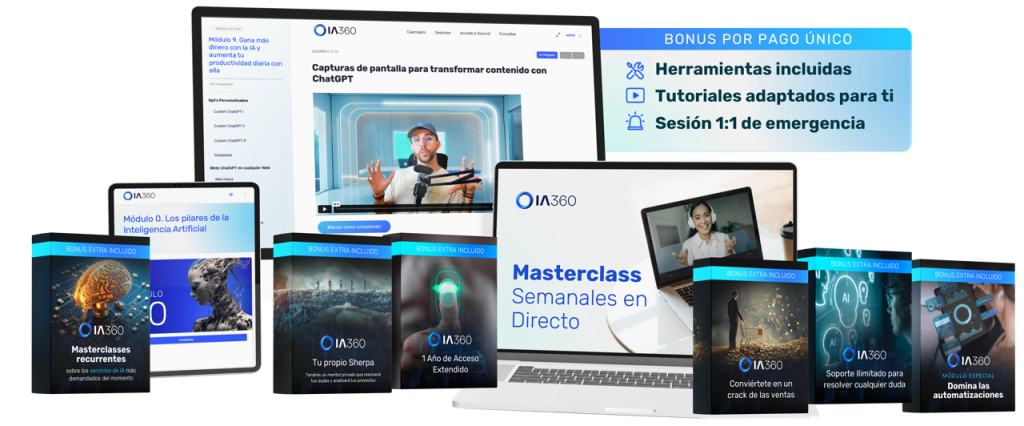 Si accedes a IA360 Academy haciendo pago único, accederas a estas ventajas: